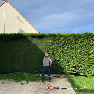 Taille régulière de haies, arbustes et massifs pour un jardin toujours propre, esthétique et agréable à vivre.